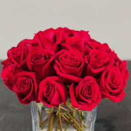 Price: $144.99BF-V10 Passionate Beauty: 26 Premium Red Roses in Square Glass Vase